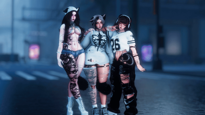 Accessories ( earrings (1, 2 ), bracelets ( 1, 2 ) , necklace , beanie, arm straps, blindfold, fishnet sleeve and sock , piercings, wrap, catears/tail, headphones, centi, glasses, harness , chains, rings, nails, kneepad , heart ) no reuse