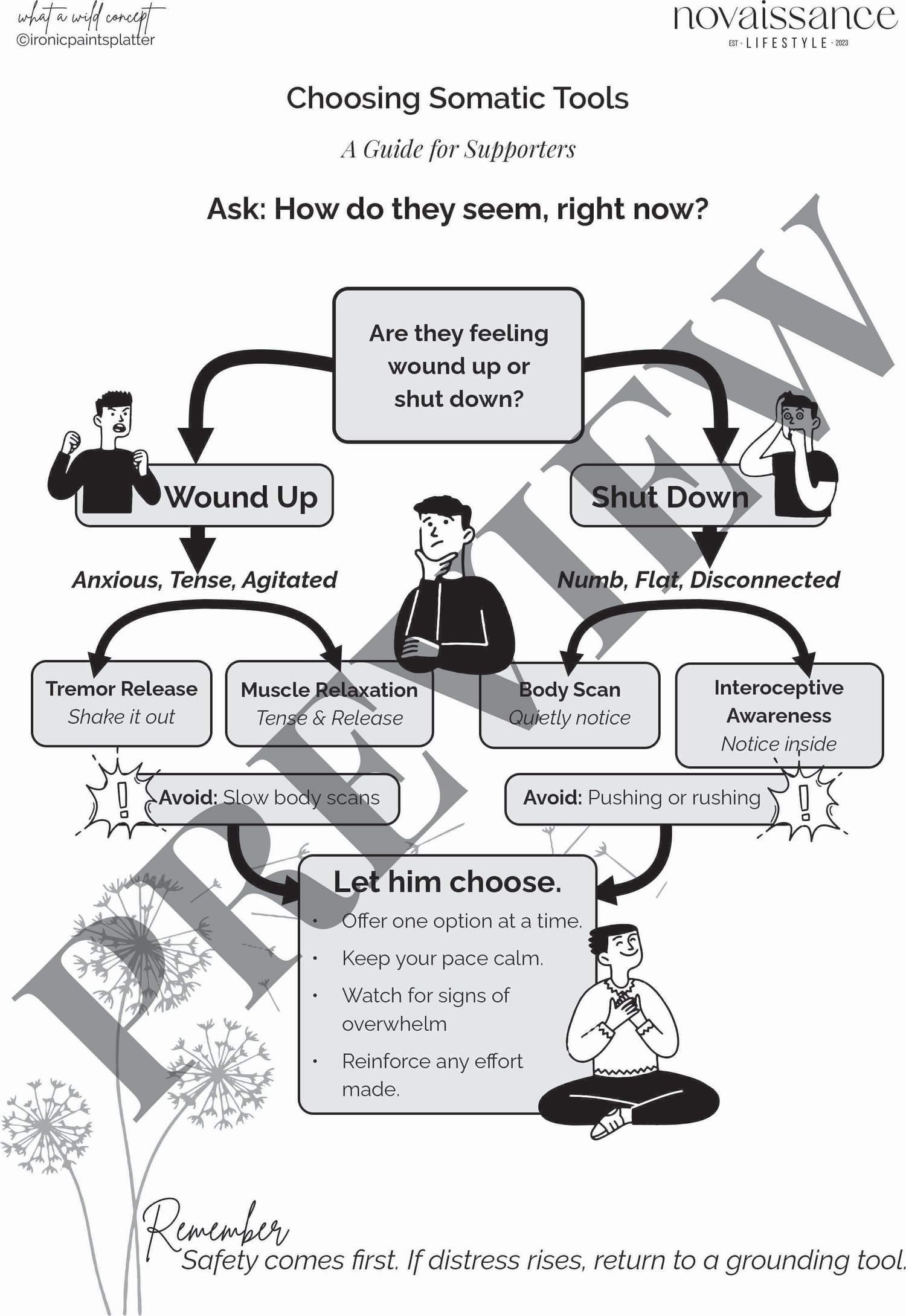 - Somatic Regulation Techniques: Body-based tools to reduce tension, discharge stress, or gently reconnect when numb or shut down, with guidance on safe use.