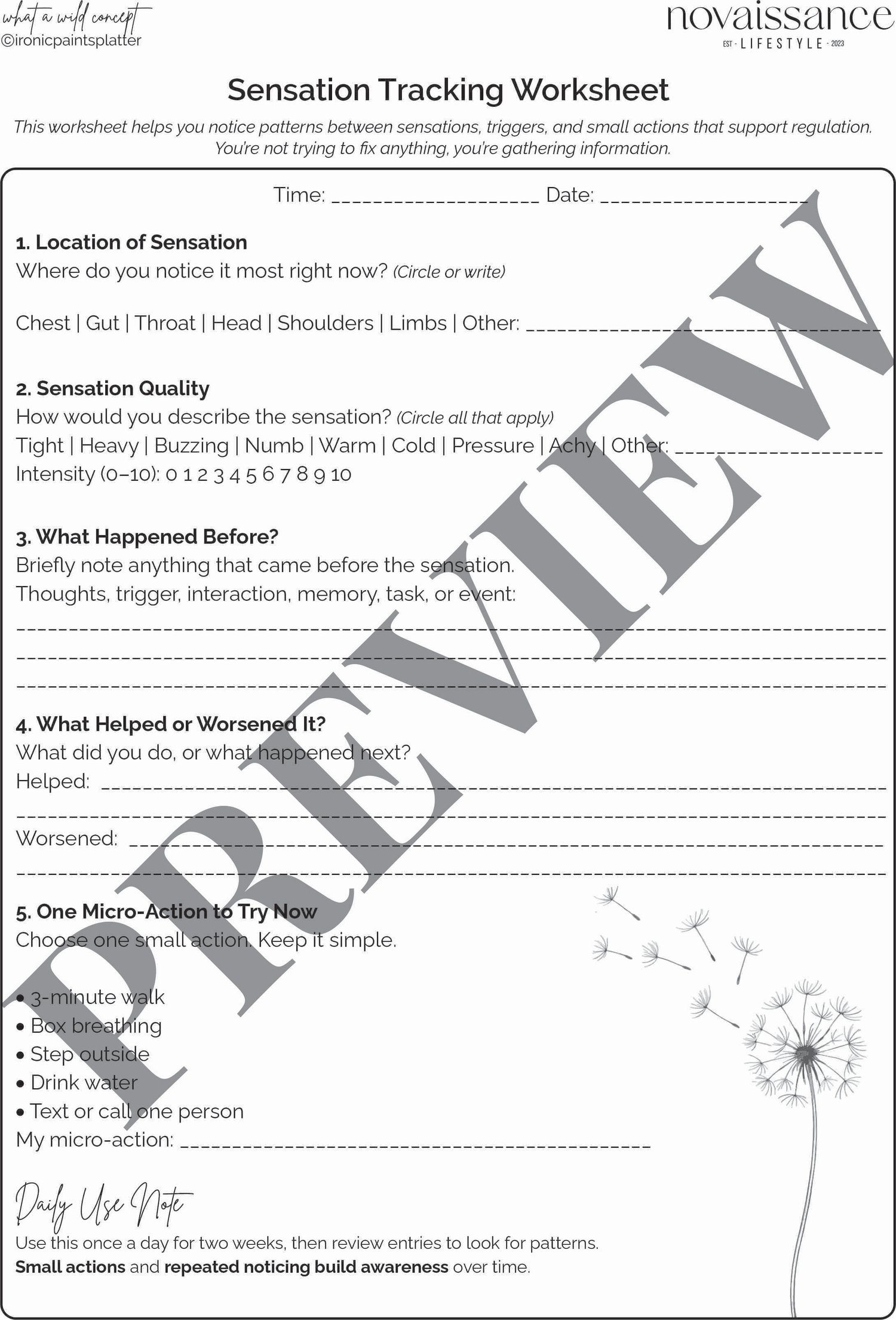 - Sensation Tracking Worksheet: A structured, non-emotive worksheet that helps men notice patterns between body sensations, triggers, and small regulating actions.