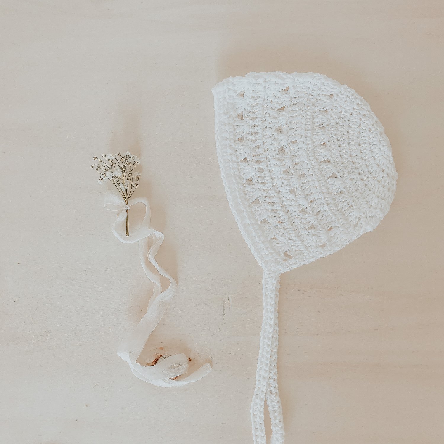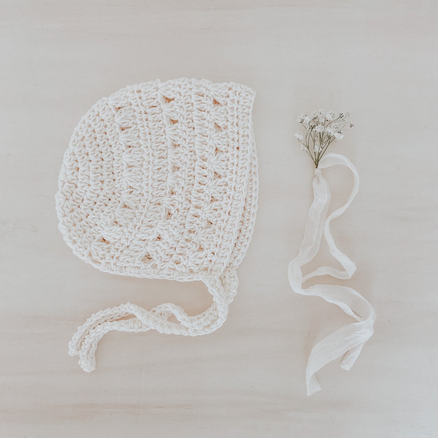 Perfect hat for the first baby pictures with a beautiful rustic and vintage feel. Simple and cozy design for any season that works very fast and looks super cute in the photos and videos.