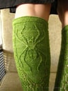 I’m one of those girls how was always fascinated by spiders. So I put my love for spiders and knee high socks into one pattern. The lace pattern is easily memorized and just when knitting knee highs get’s a bit boring the calf is knitted with the large spider on it.