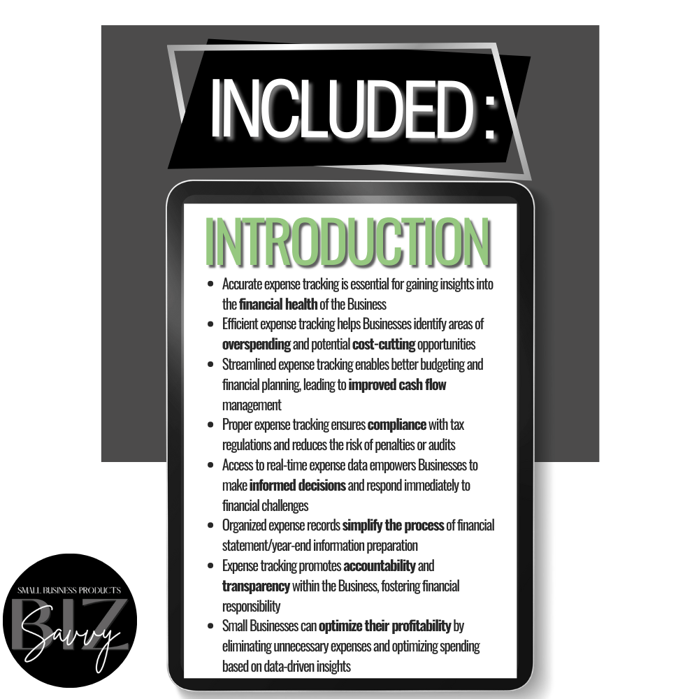 This BUSINESS EXPENSE TRACKING GUIDE (PDF DOCUMENT) Includes: