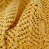 I love long shawls, but they can be a little hard to manage, so the shaping makes this easy to wear long, or wrapped. Note how the Arrowhead lace is used in a large stitch multiple along one long edge, as a part of the main body, then in a smaller stitch multiple to finish the top edge. I love to “see what’s inside” stitch patterns, and the vertical borders came from the Slip Stitch Cable.