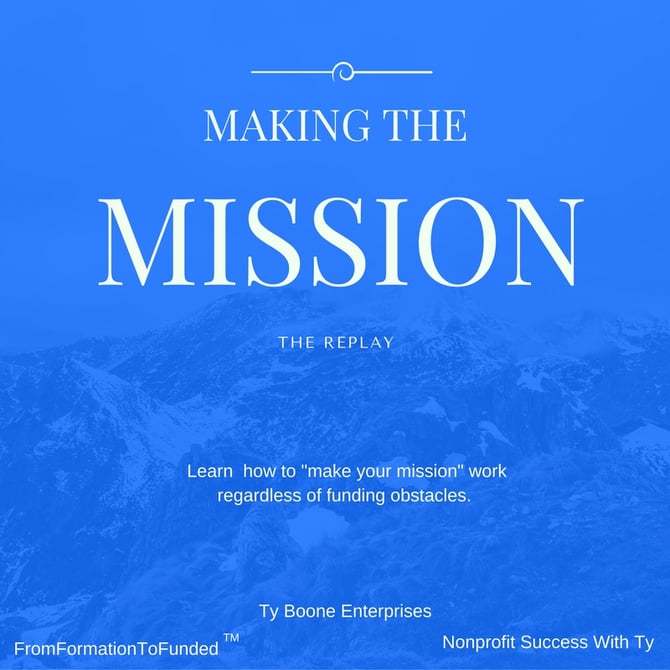 If you answered YES to any of these questions, you do not want to miss "Making the Mission". Find out how to get your mission moving even when the money is funny. YES, there are ways to start and grow your programs even when the funding is not where you desire for it to be.