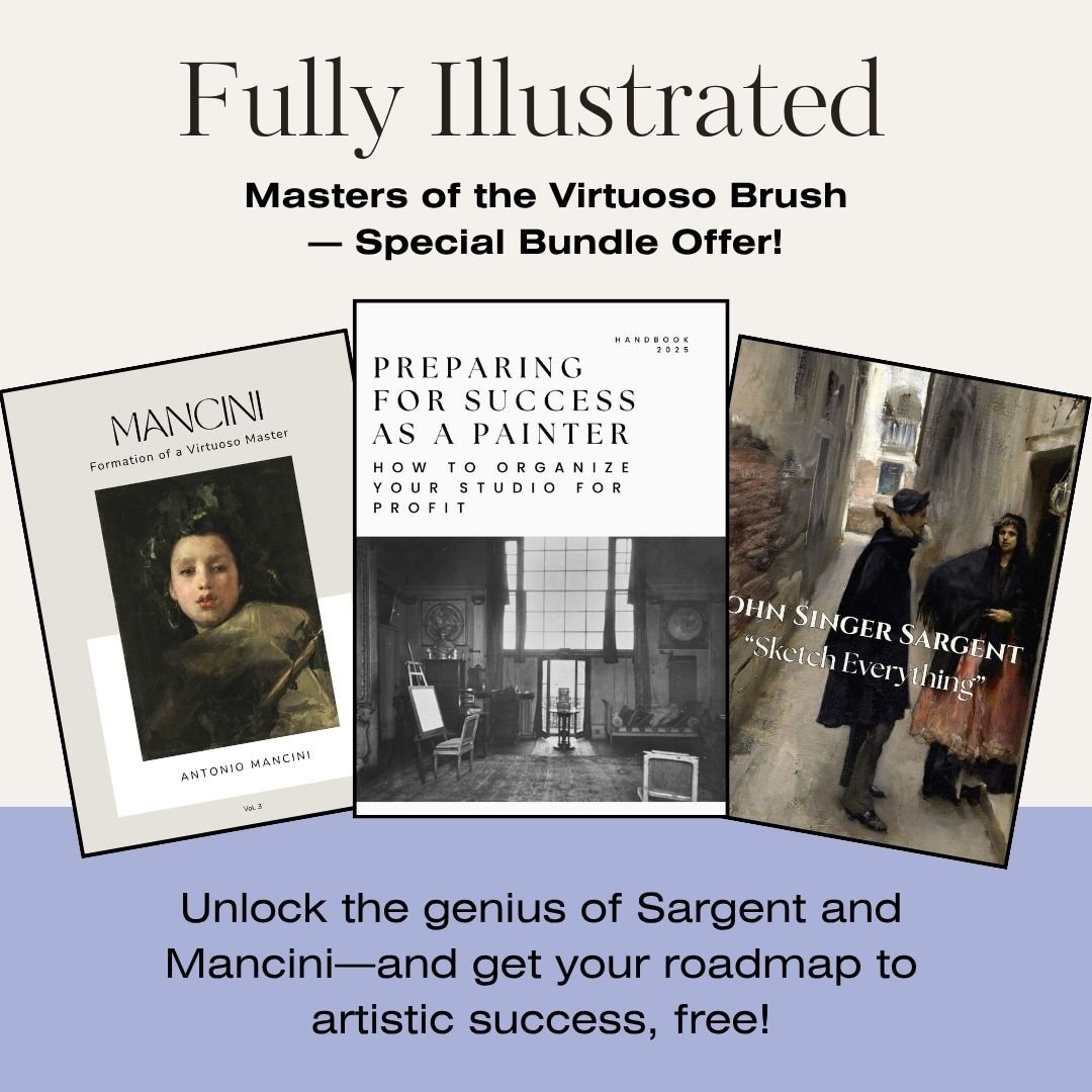 Get two Essential eBooks on the great painters John Singer Sargent and Antonio Mancini, and receive our popular guide Preparing for Success as a Painter — FREE!