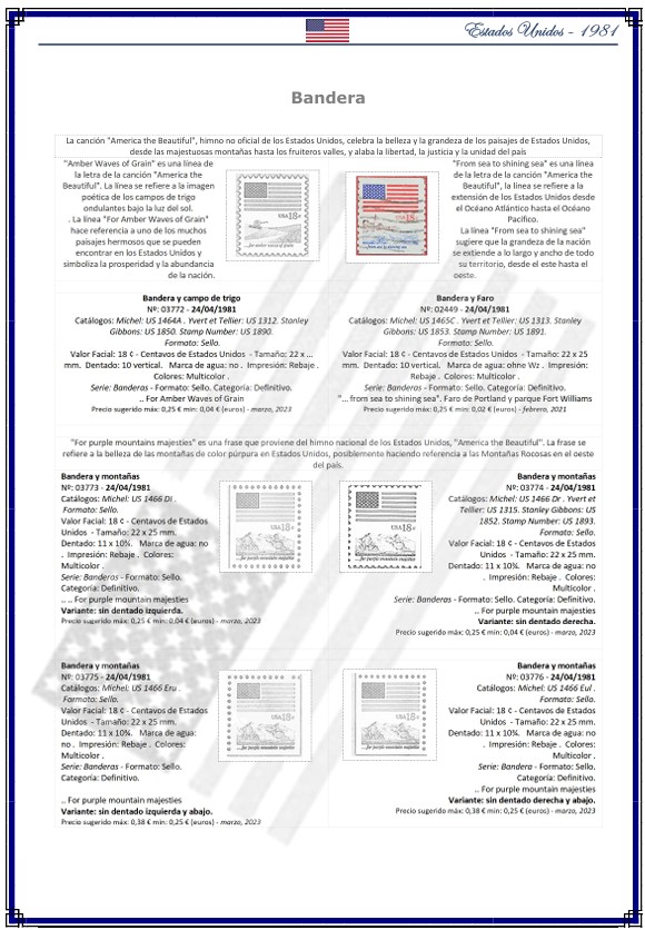 Ficha PDF – Sellos Estados Unidos 1981 “Banderas” (Catálogo Sooluciones US‑1981‑03772‑02449‑03773‑03774‑03775‑03776)