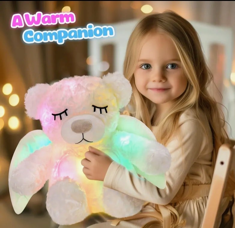 White sleepy angel bear with multicolor lights