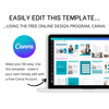 Each template is easily editable in the free version of Canva. Simply change text, fonts, colors, elements, photos, etc.