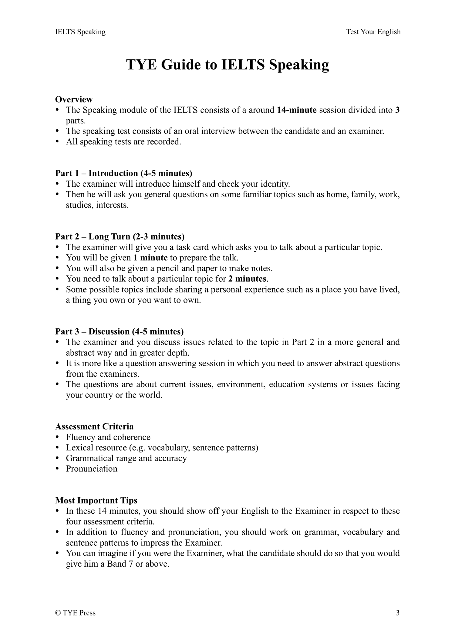 IELTS Speaking 的難處在於有很多 Speaking Skills 需要學習及運用,不要埋怨為何花了數千元報讀坊間的課程,但仍沒有好好掌握這些必要技巧,現在你有一個非常實惠的選擇,就是閱讀由 Terry Sir 親自編寫的 TYE Guide to IELTS Speaking (32 頁 A4), 並將所有練習完成,及早提升說話能力,以便取得理想分數到外國升學或移民👇🏿