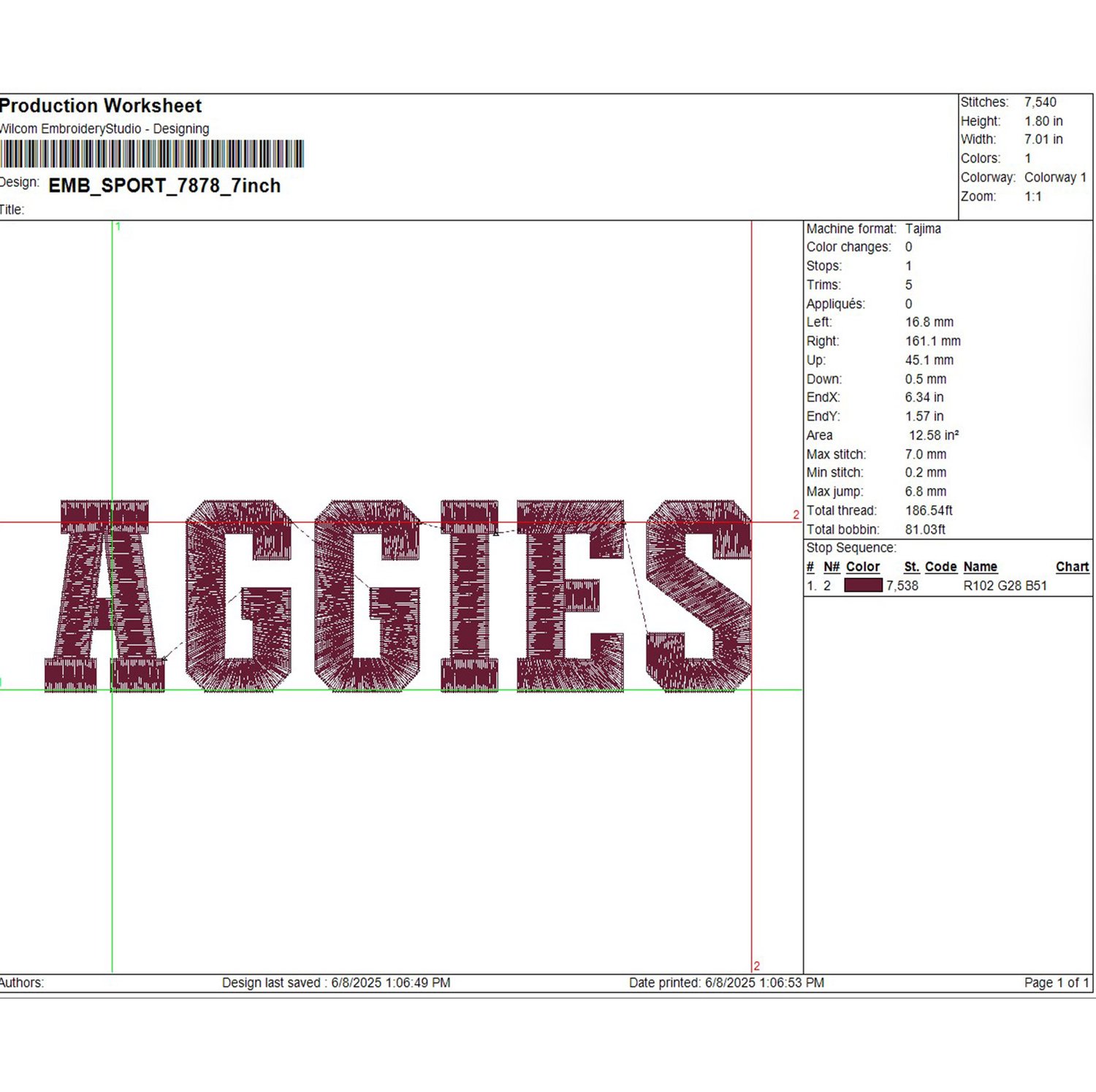 NCAA Aggies Football Team Word Logo Embroidery Designs, NCAA Texas AM Aggies Machine Embroidery Files, NCAA Logo embroidery designs, NCAA Texas AM Logo, Digital Download
