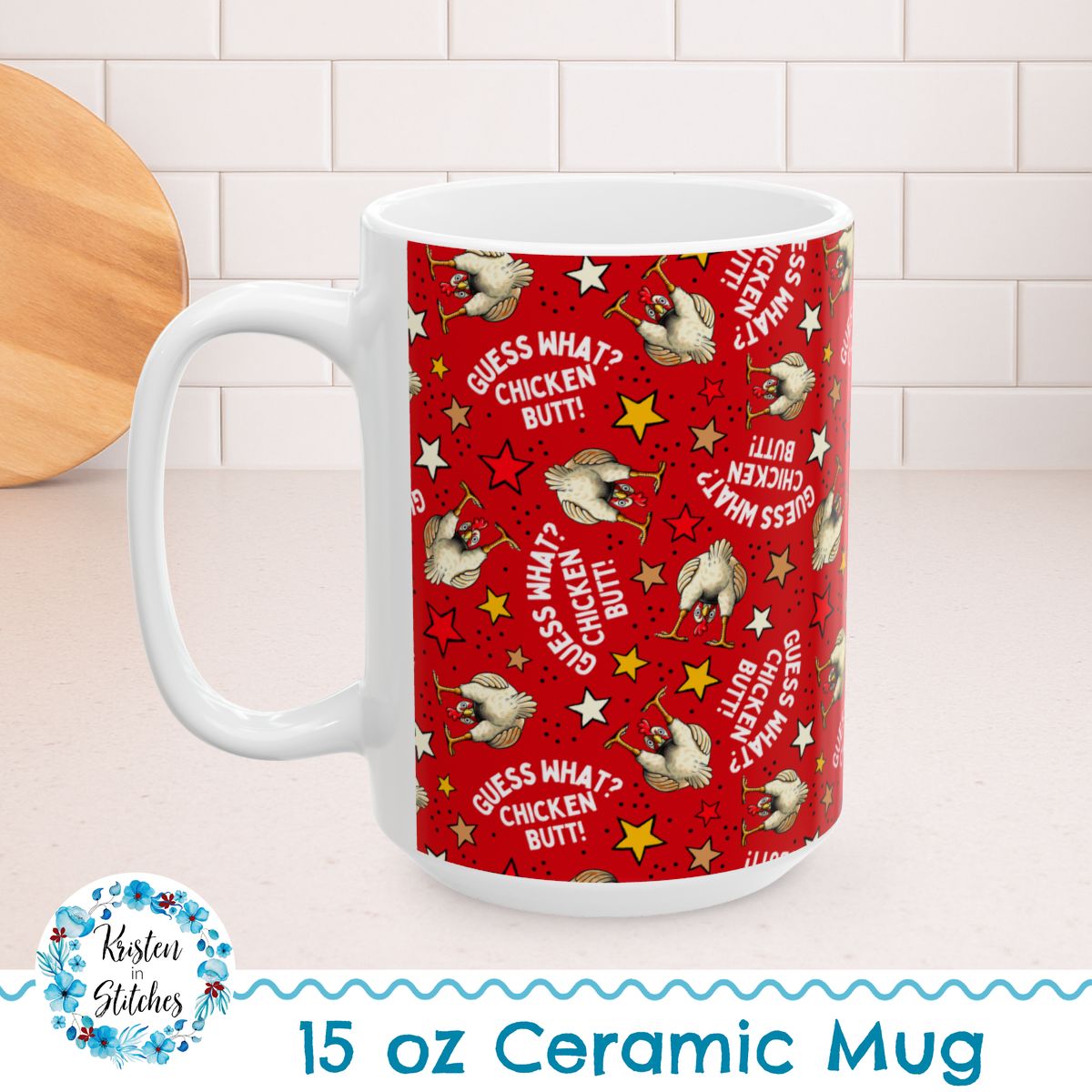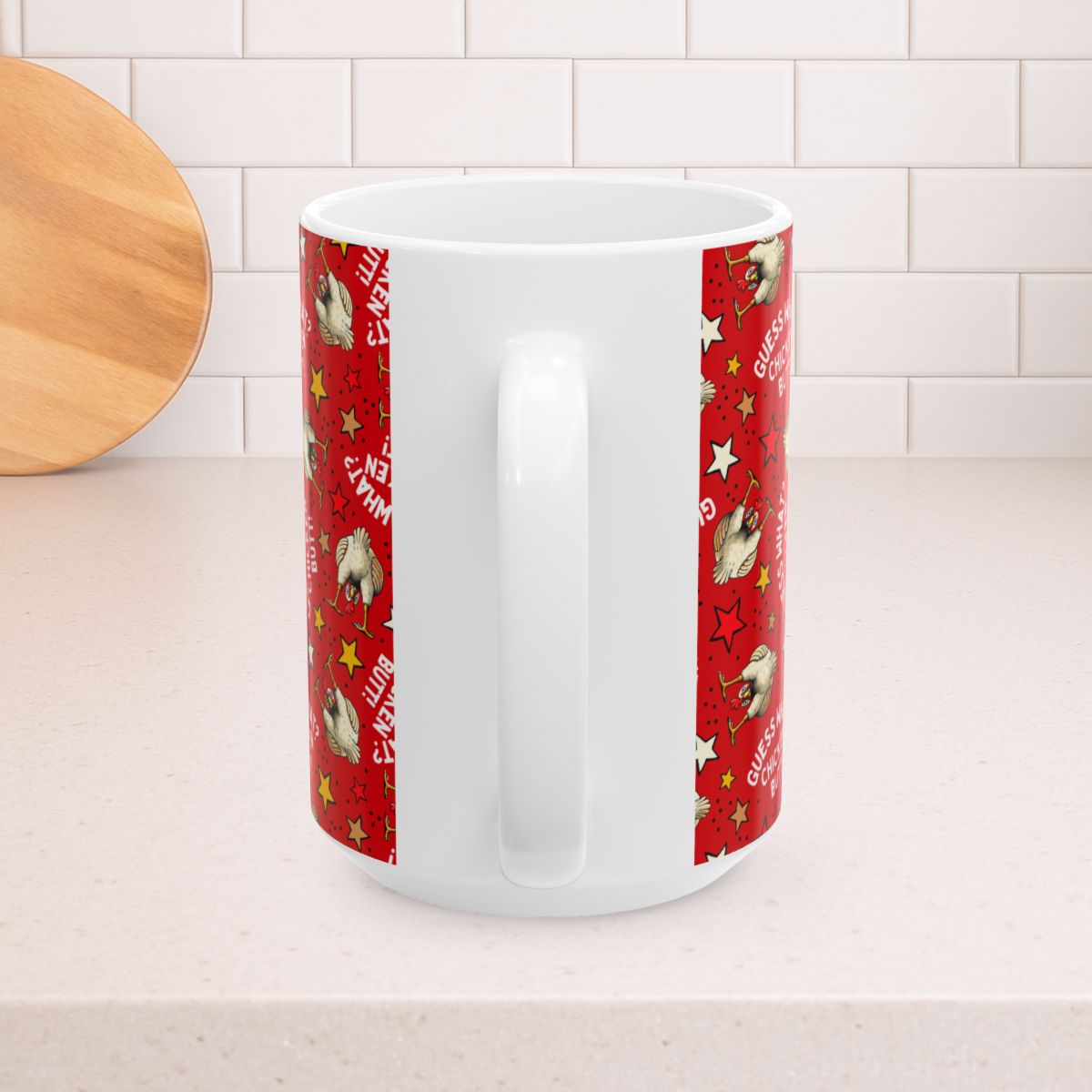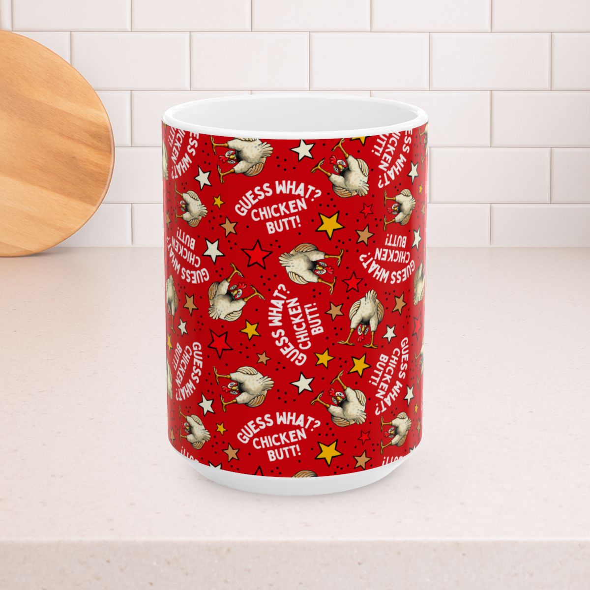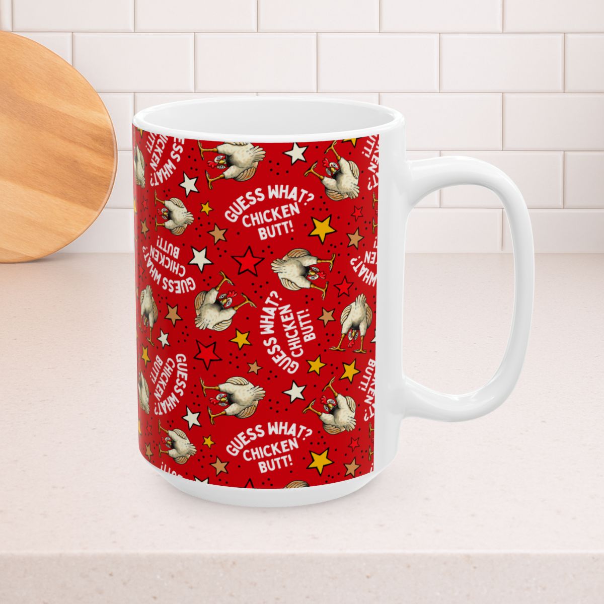 Guess What? Chicken Butt! 15oz Ceramic Mug, Large Coffee Cup, Sarcastic Humor