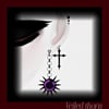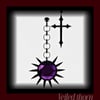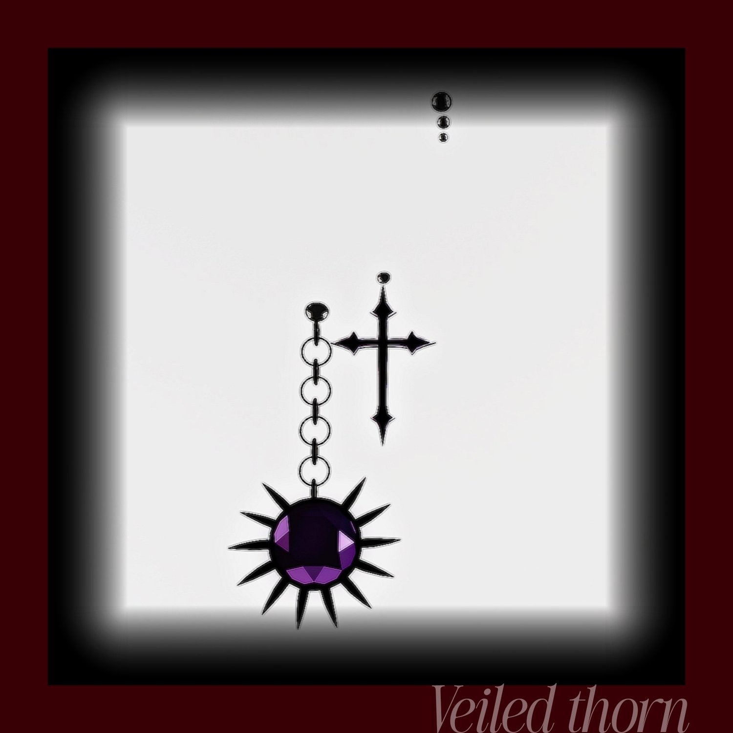 These earrings feature a sleek black cross paired with a spiked sunburst pendant and a rich amethyst-purple gemstone, designed to complement gothic, punk, and fantasy avatars.