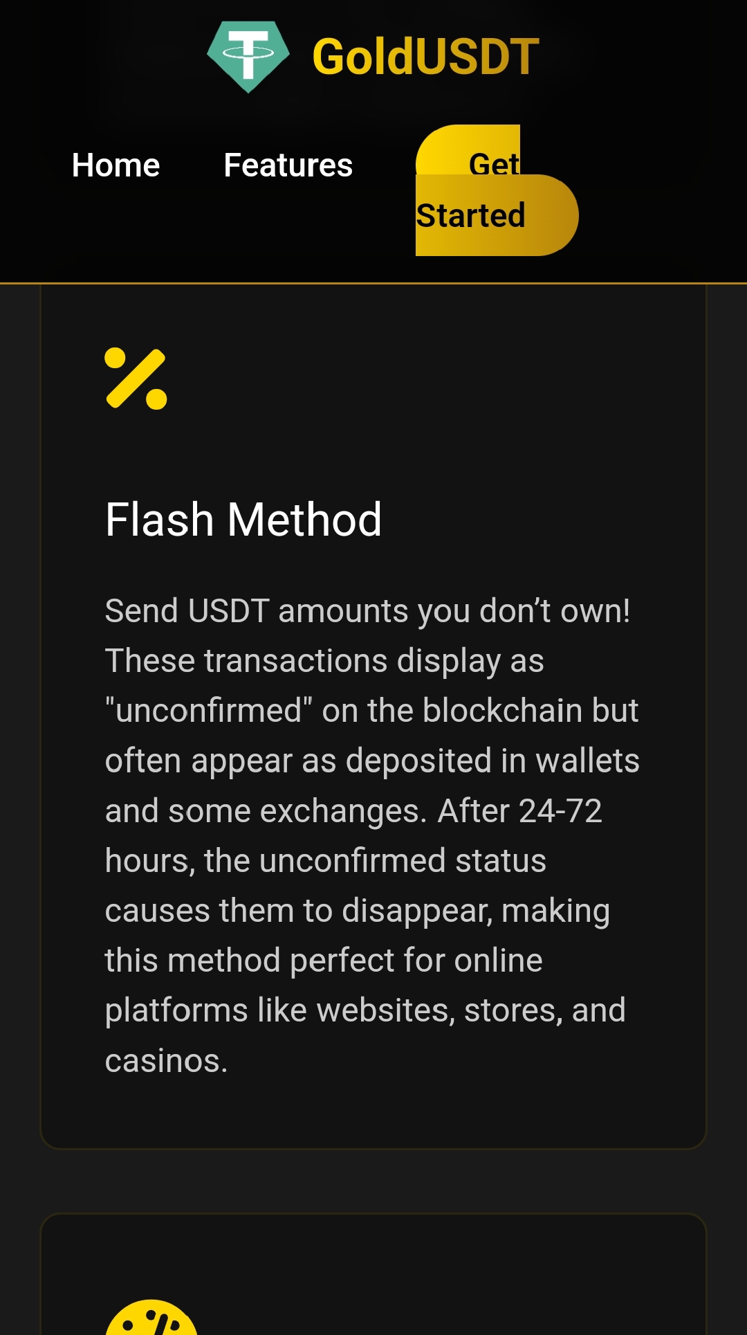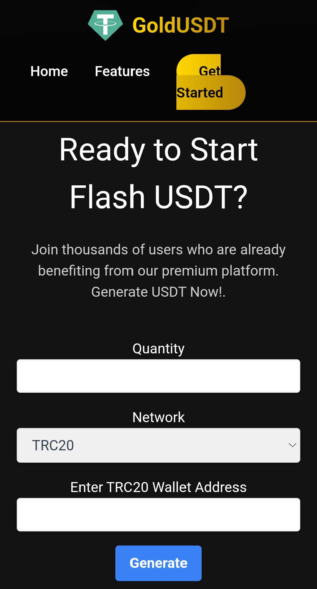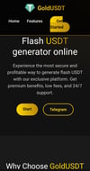 Goldusdt it's flash usdt generator online website script , this script will save many times for you , what need to do it's just to upload this script on your server , change wallet address with your wallet.