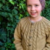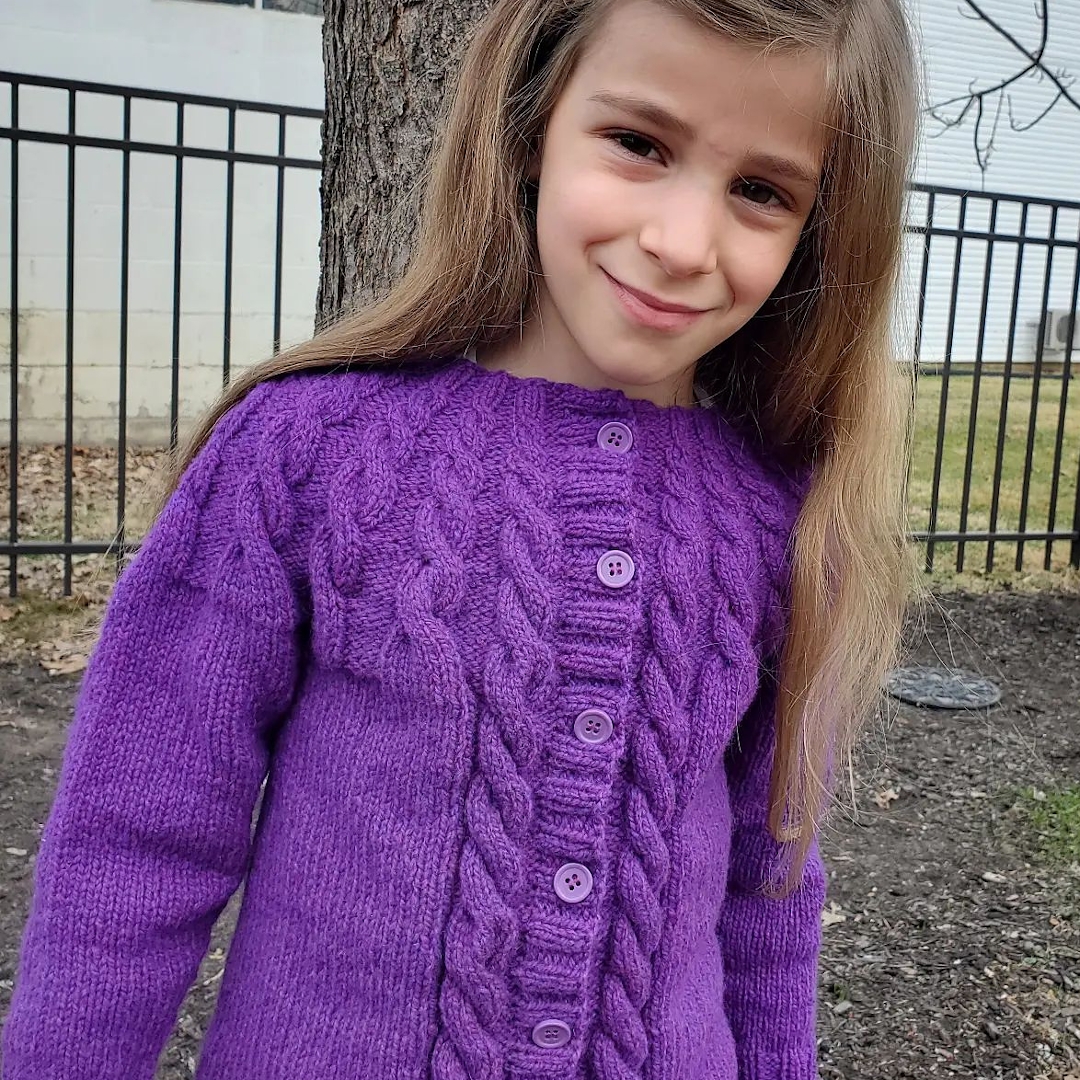 The cardigan can be knitted with a collar, which gives it more of a jacket feel, or without. Knitters need to be familiar with cabling, the increases are within the twists. The pattern has written instructions.