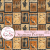 Add some old-school glam to your spooky creations with this seamless digital paper featuring retro Halloween stamps, pin-up girls, cobwebs, skulls, and “BOO!” pops of fun. Hand-drawn in warm fall tones of burnt orange, tan, and black, it brings nostalgic charm to your Halloween crafts and designs.