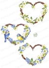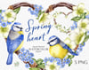 Spring hearts. Boho wreaths with hearts, flowers, titbirds. Floral compositions. Spring and Easter theme
