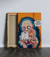 "Gollum in a Coronavirus Psychosis" is a mixed vector watercolor graphic design with fabric finish effect.
