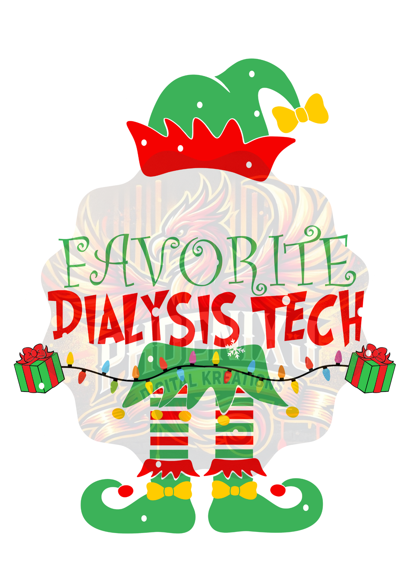 Celebrate the holiday spirit with our fun and festive design, "Santa's Favorite Dialysis Tech"! Featuring a whimsical elf outfit, bright holiday lights, and cheerful snowflakes, this playful graphic is perfect for the hardworking dialysis techs spreading care and cheer this season. Ideal for apparel, mugs, and more, it's a heartwarming way to show appreciation for the lifesaving heroes in your life. Get into the Christmas spirit and share the joy!