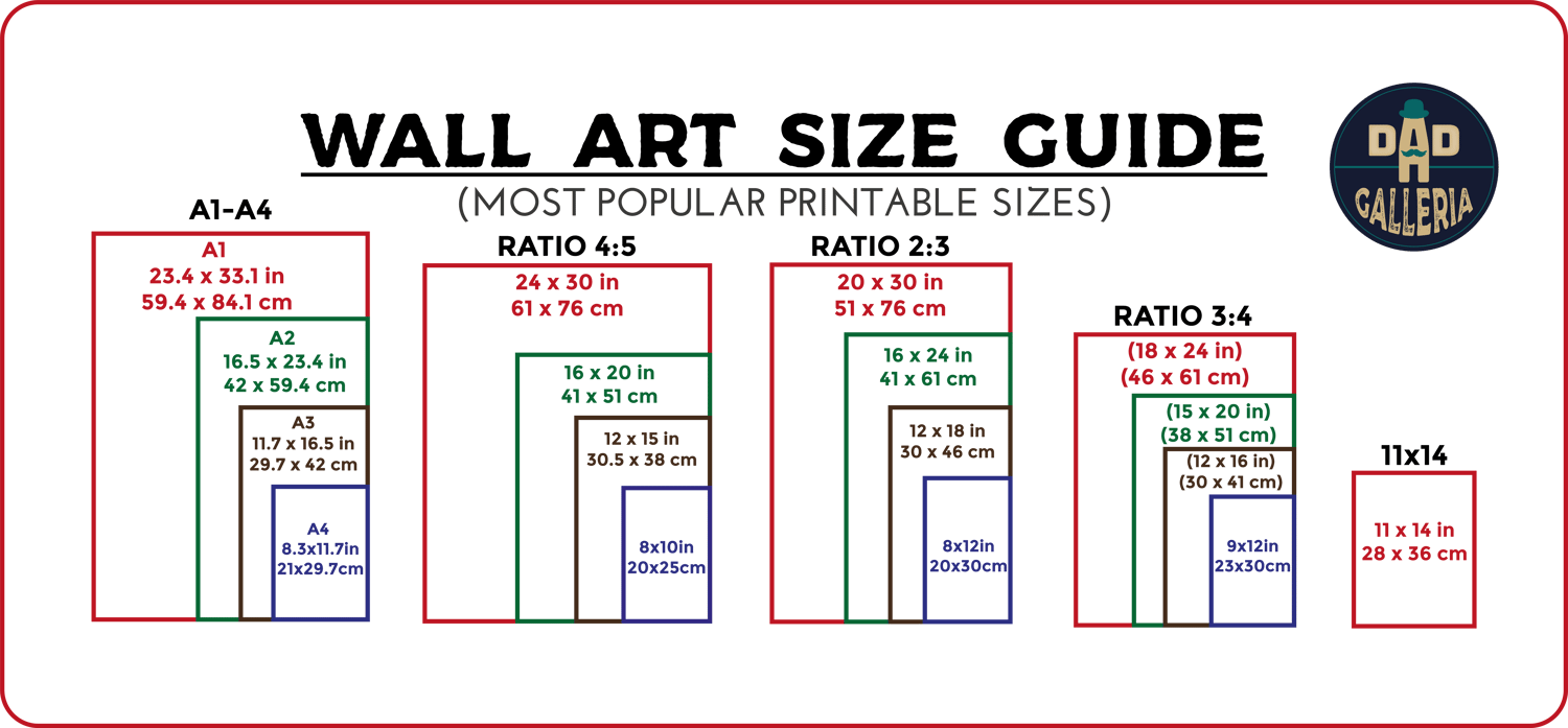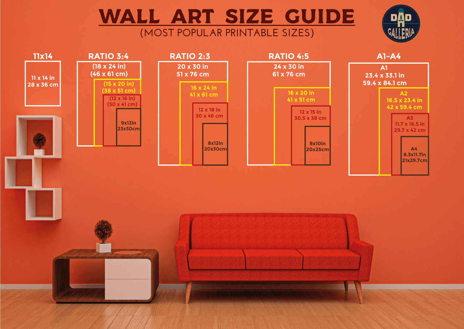 Wall Art Size Guide, Standard Frame Sizes Guide, Living Room Frame Sizes, Poster Sizes Guide, Frame Aspect Ratio, Wall Art Sizes