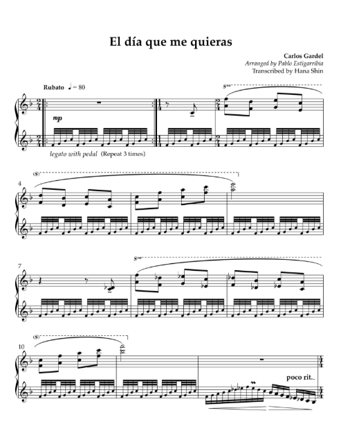 Original music by Carlos Gardel. Arrangement by Pablo Estigarribia. Transcription by Hana Shin.