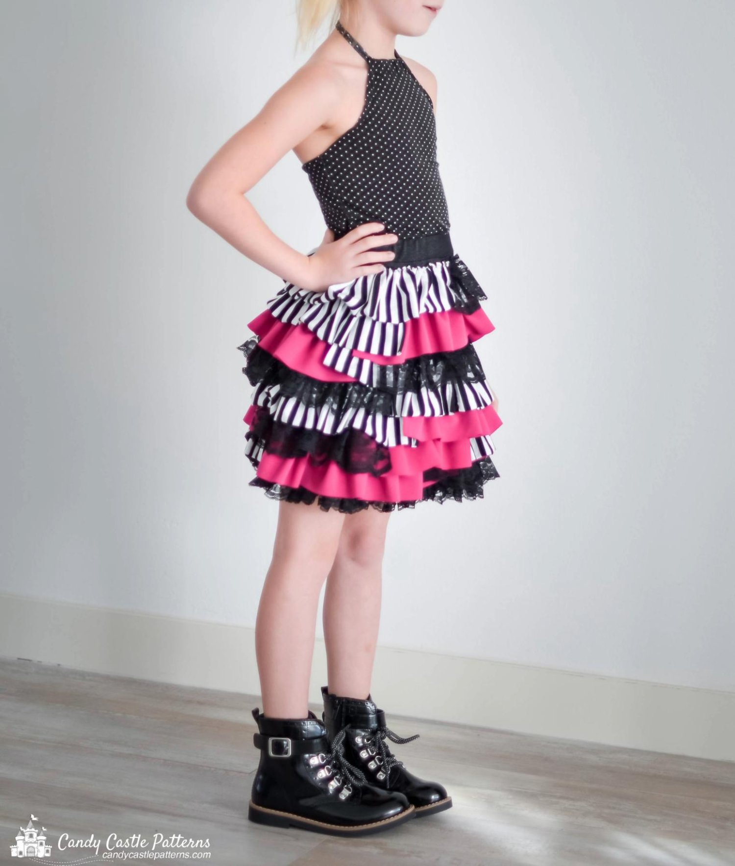 Create a playful, layered ruffle skirt with the Truffle Ruffle Skirt Sewing Pattern! Perfect for using up scrap fabrics, this skirt is fun, stylish, and easy to sew. Whether you choose soft bridal tulle for a delicate touch or colorful knits for a vibrant look, this pattern lets you mix and match fabrics to create something unique.