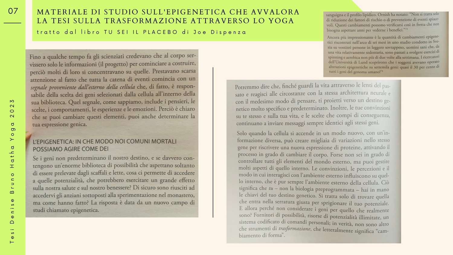 - Materiale di studio sull'epigenetica che avvalora la tesi sulla trasformazione attraverso lo yoga