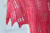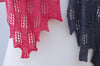 The pattern is written for 700m of lace-weight yarn. Testers have had success in using light fingering, but be aware that because of the skyline ends, changing the width is not straightforward; following the pattern will give you a luxuriously wide scarf and may require more yardage.