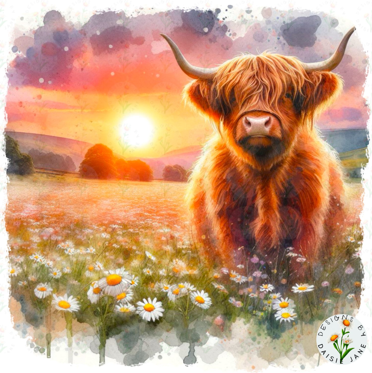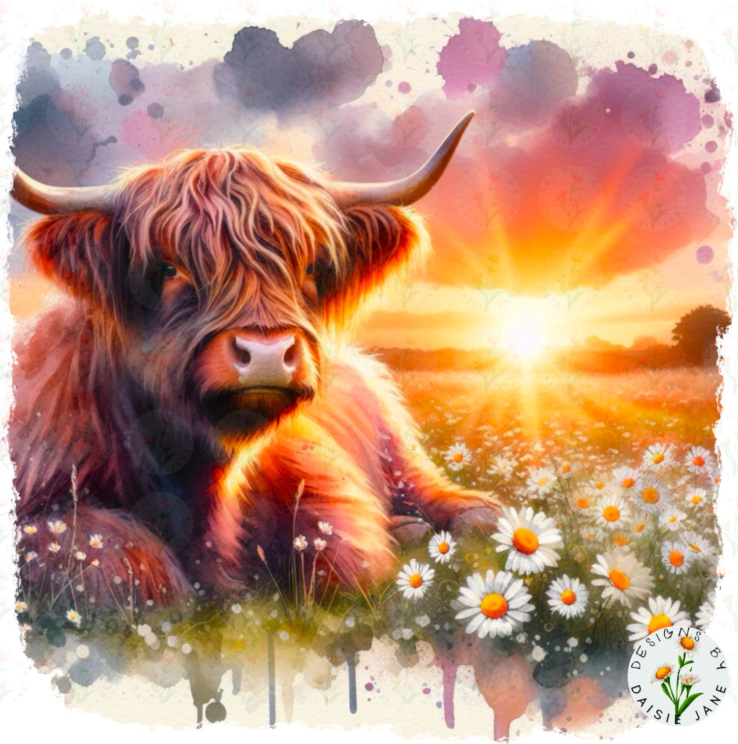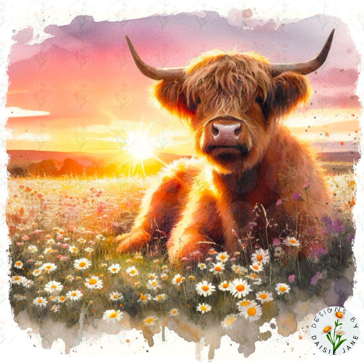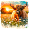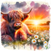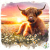BUNDLE Of Sunset Highland Cows In Daisies. 4 Files
