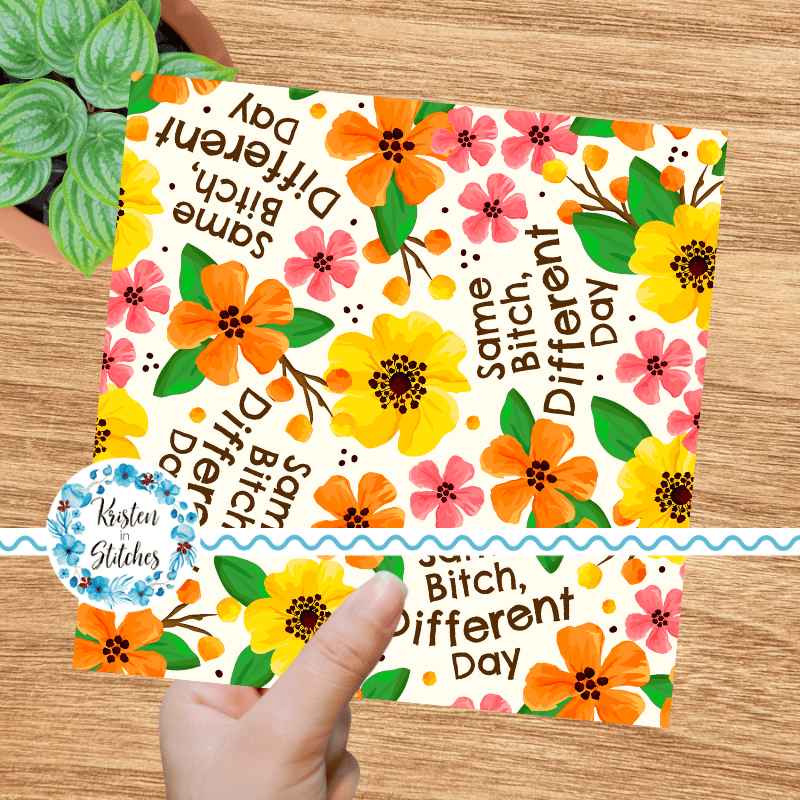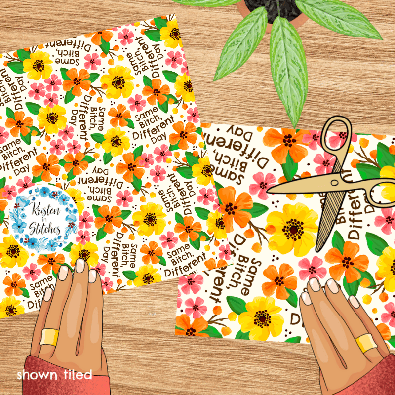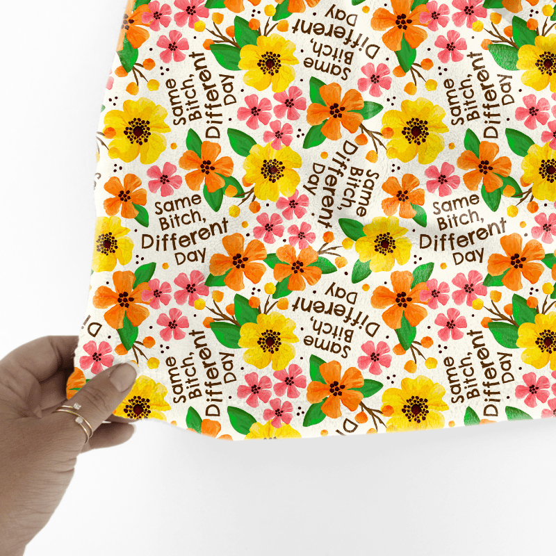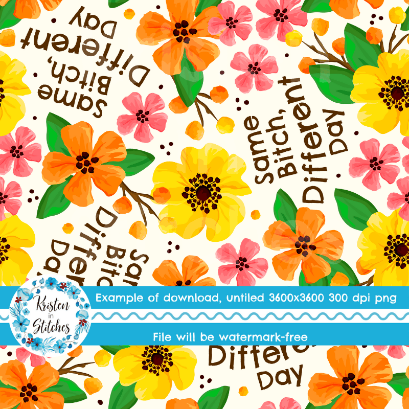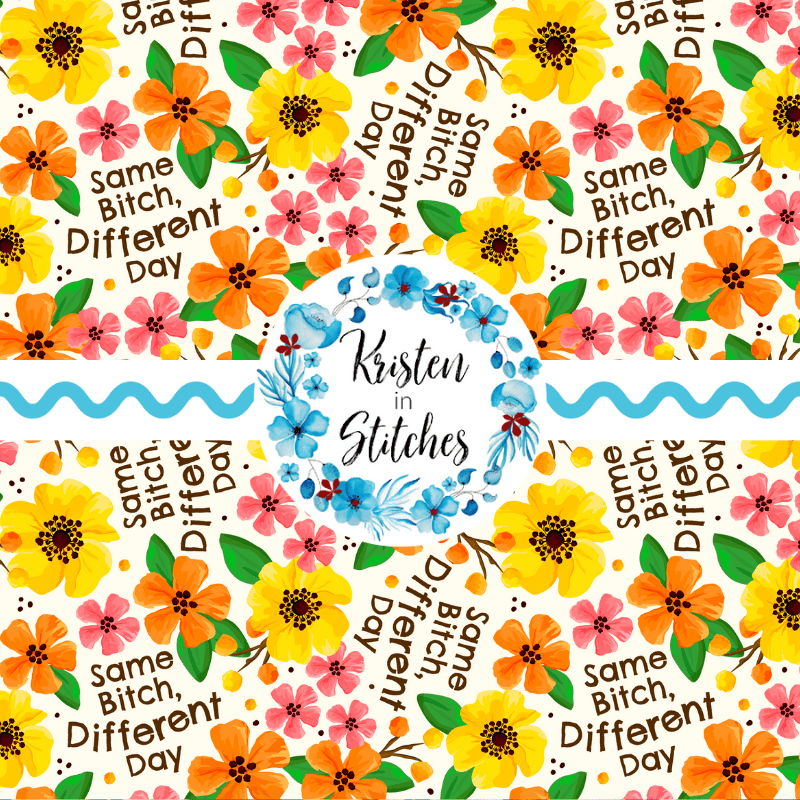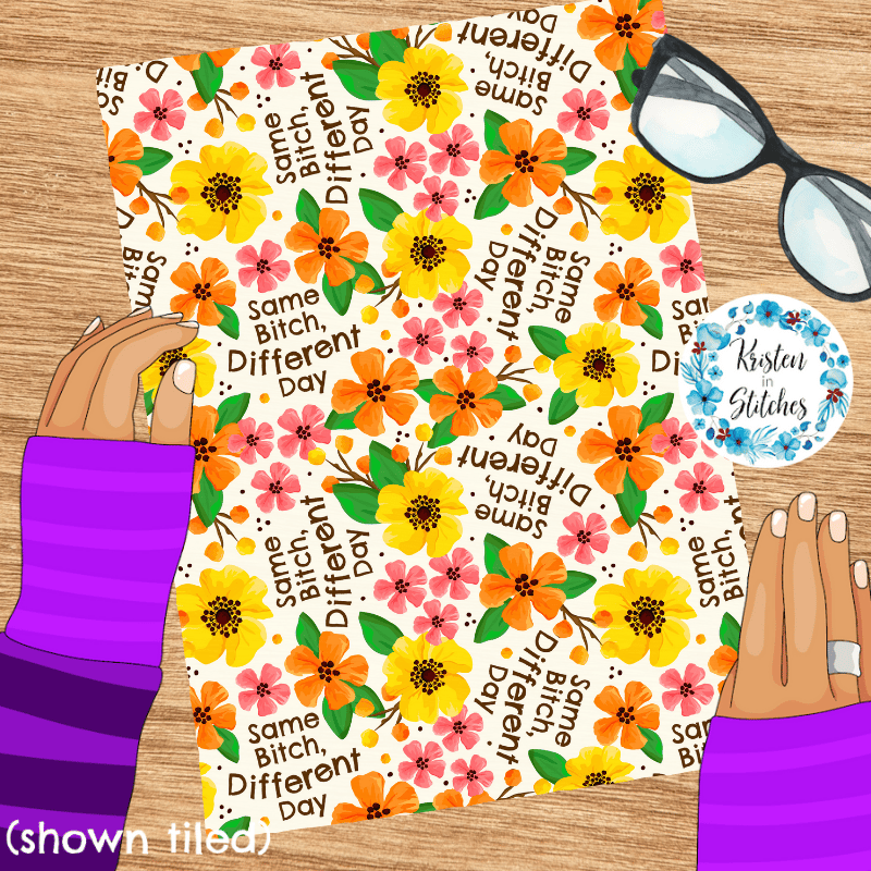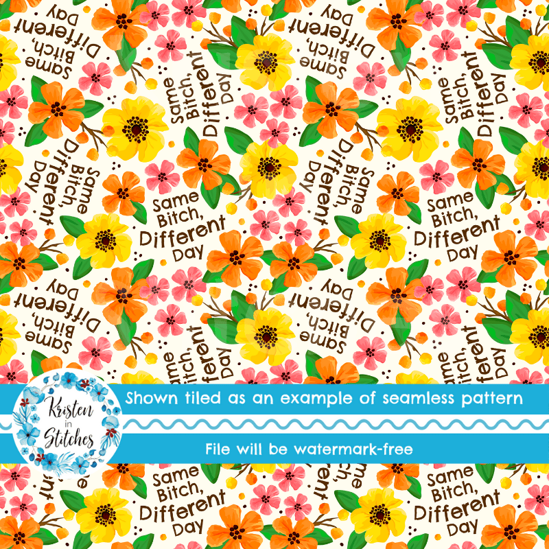 Same Bitch Different Day Seamless Pattern, Sarcastic Floral, Pretty Profanities, Ivory