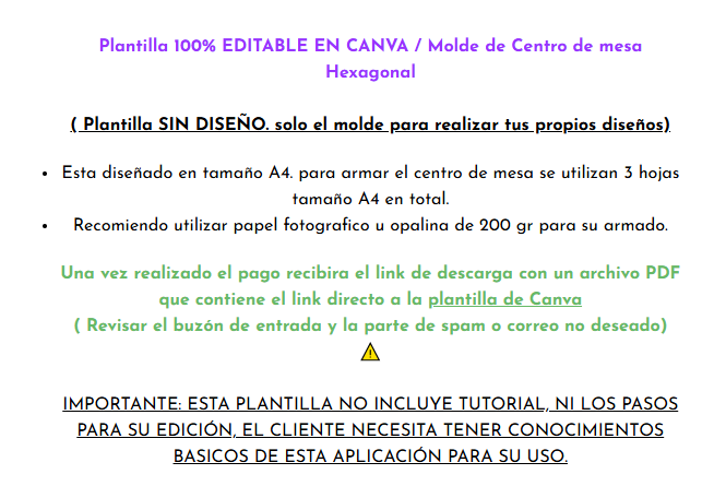 Plantilla Centro de mesa Hexagonal EDITABLE EN CANVA