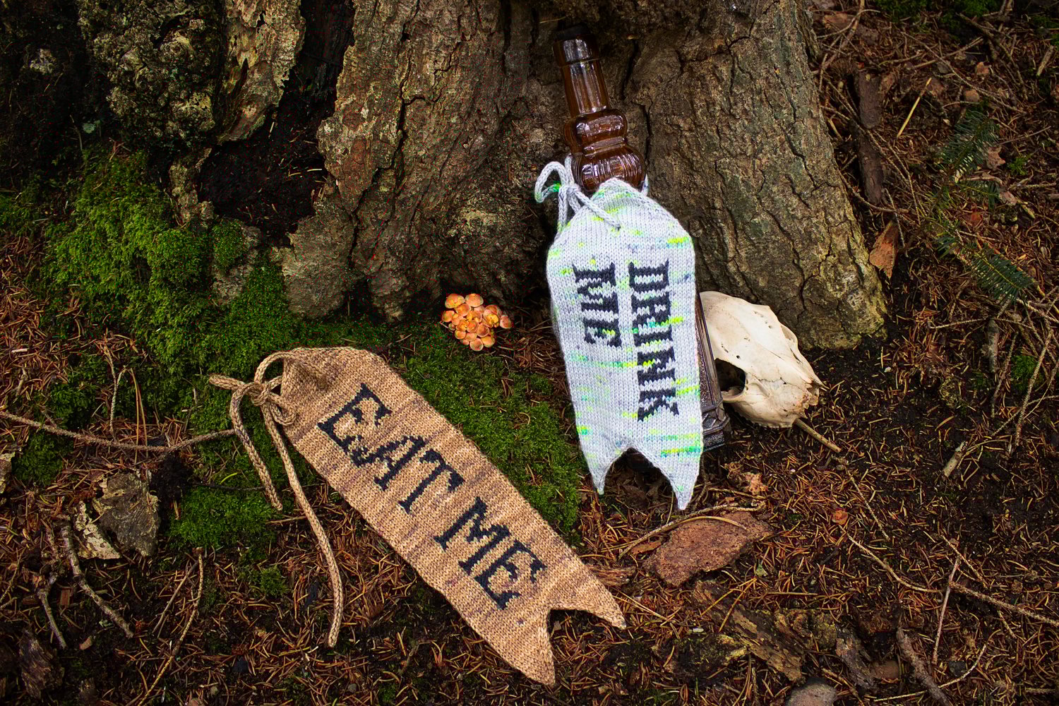 Eat Me, Drink Me is the next installment for my upcoming book Through the Knitting Glass! This is a completely customizable and reusable tag perfect for gifts, home decor, or even as a bookmark! There are two sizes of tag included in the pattern, each with their own vintage alphabet, along with graph paper worksheets to create a unique label for holidays, birthdays, and every day use. Both tags have a front and back side that are seamed together after blocking, so lettering can be added in a variety of ways. There is also a built in eyelet for attaching them to just about anything. The best part is they can be knit in just a couple days with those small bits of scrap yarn left lying around!