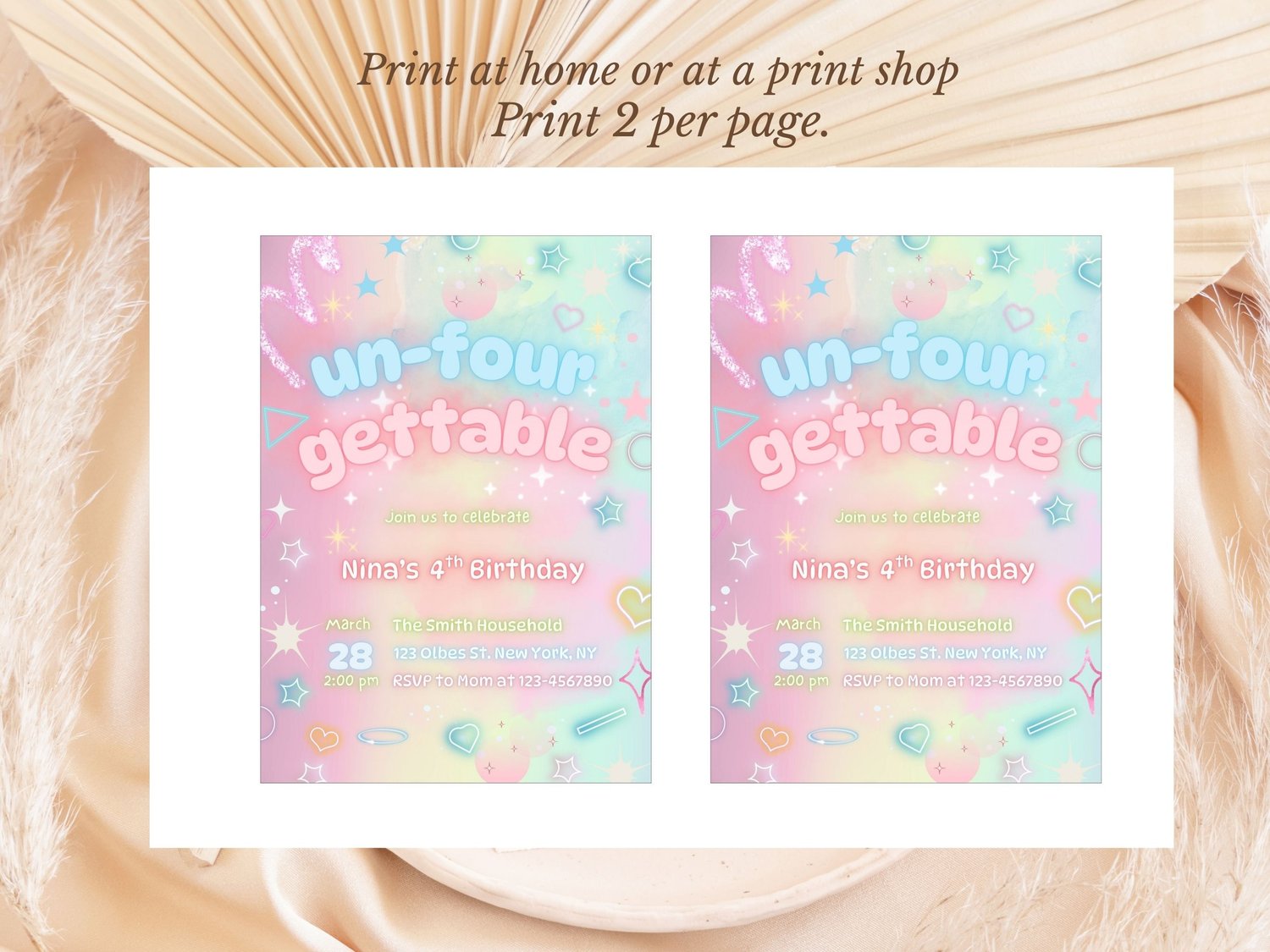 Editable Un-Four-Gettable Birthday Party Invitation Neon Glow 4th Birthday Party Neon Dance Disco Neon Glow Jump Party Instant Download