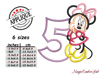 Minnie Mouse APPLIQUE, Minnie Fifth Birthday, 6 sizes, Instant Download
