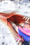 OS: 75” (190cm) along the wingspan of the shawl,