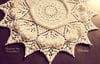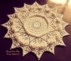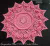 Pattern consists of 32 rounds and measures 14 inches, used around 400 yards of size 20 mercerised cotton thread with 1.75 mm steel hook.