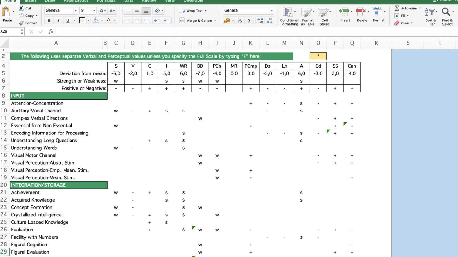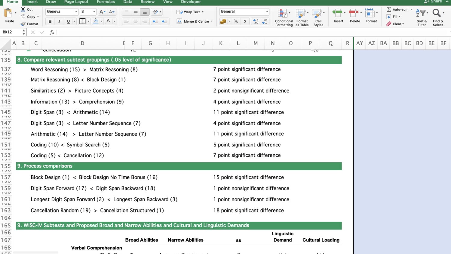 WISC-IV (Wechsler Intelligence Scale for Children - IV) - Interpretive Worksheet (American)