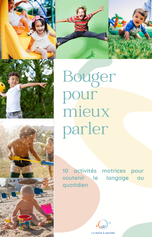 Le développement du langage ne se fait pas seulement assis à une table — il s’enrichit aussi en mouvement ! Cette ressource gratuite propose 10 idées simples d’activités motrices qui soutiennent le développement langagier chez les tout-petits. Chaque activité inclut une suggestion de mots à introduire, de phrases à modéliser, et de questions ouvertes à poser pendant le jeu.