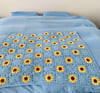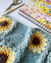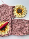 This crochet blanket pattern came about when I decided to make a blanket for a friend at work who was pregnant. When we talked about the colour and type of blanket she might like I noticed she was wearing a sunflower print dress. It looked lovely, so I suggested she might like a sunflower blanket then when I posted it on Instagram I was asked numerous times for the pattern so I eventually decided to make it.