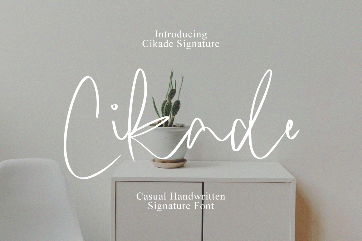 Cikade Signature with a handmade Signature style, decorative characters and a dancing baseline! So beautiful on invitation like greeting cards, branding materials, business cards, quotes, posters, and more!!