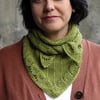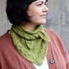 Perfect for the refreshing days of spring or transitional seasons, the Leaflet shawlette features a simple slipped-stitch garter pattern at its core and edges adorned with a subtle lace leaf motif.