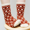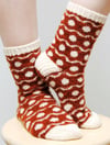 Soft Spots feature a simple and graphic colorwork design: polka dots. These toe-up socks are designed to have a colorwork pattern with short floats that do not need to be caught.Gusset increases are hidden away on the bottom of the sole to make the polka dot design flow uninterrupted on the foot. Stitches are increased above the heel flap for better fit: the wider leg ensures the socks will go smoothly over your heel. Toes, heel flaps, and cuffs are worked in the contrasting color for bright color pops.