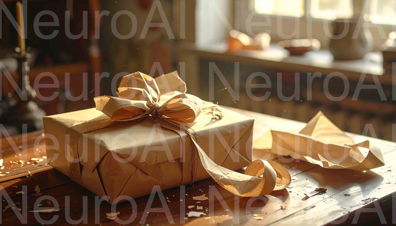 Wrapped gift with ribbon awaits opening moment