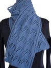 Isola is knit in two pieces, each from the cast on edge to the center of the scarf. After both sides are knit they are grafted together.
