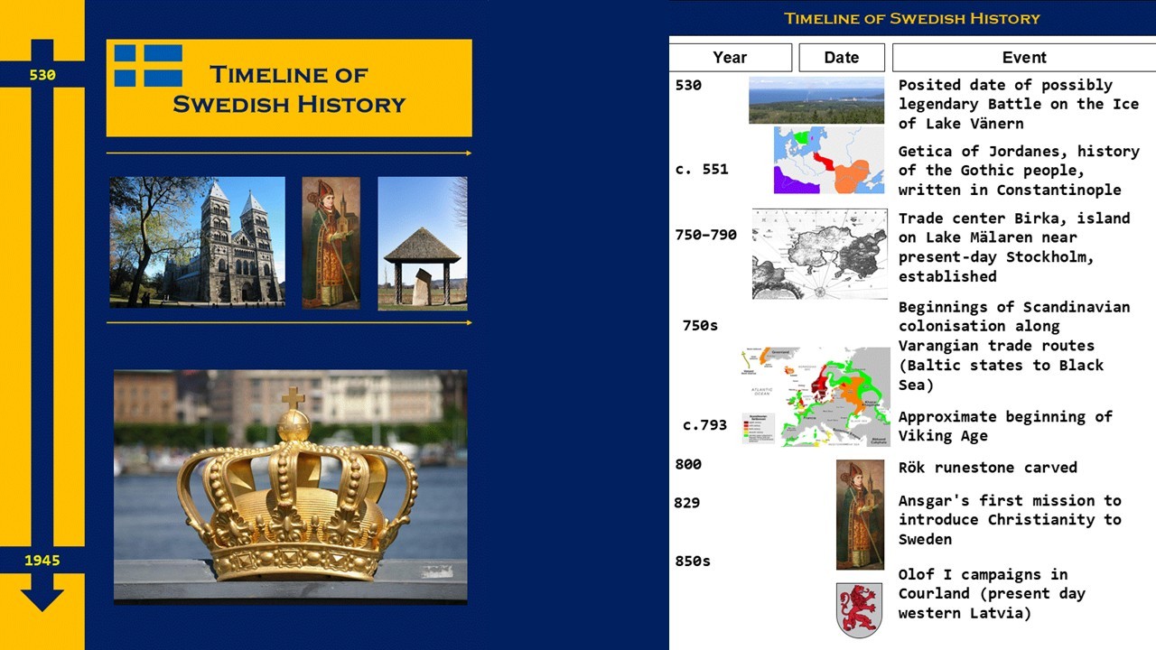 बदकिस्मती से, स्वीडन के इतिहास के बारे में हिंदी जैसी ज़रूरी भाषा में बहुत कम ऐतिहासिक किताबें हैं। स्वीडन में लगभग 11 मिलियन लोग रहते हैं और 600 मिलियन से ज़्यादा लोग हिंदी बोलते हैं। अब समय आ गया है कि हम भारत में अपने दोस्तों को स्वीडन का रोमांचक इतिहास दिखाने की अपनी काबिलियत को बेहतर बनाएं। स्वीडन के लोगों को भारतीय लोग और उनका खाना भी पसंद है।