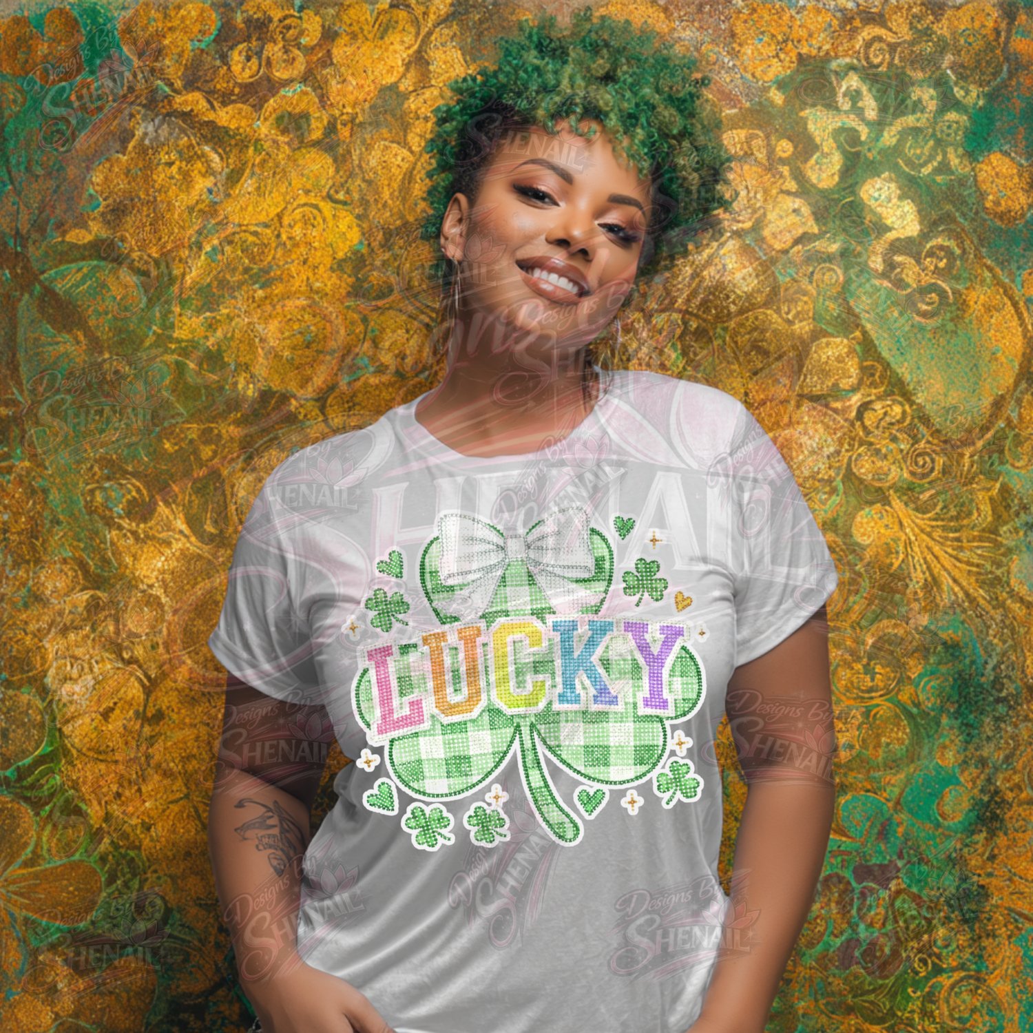 Lucky Shamrock PNG, St Patrick’s Day Coquette Bow Clover Design for Shirts & Sweatshirts – Instant Digital Download