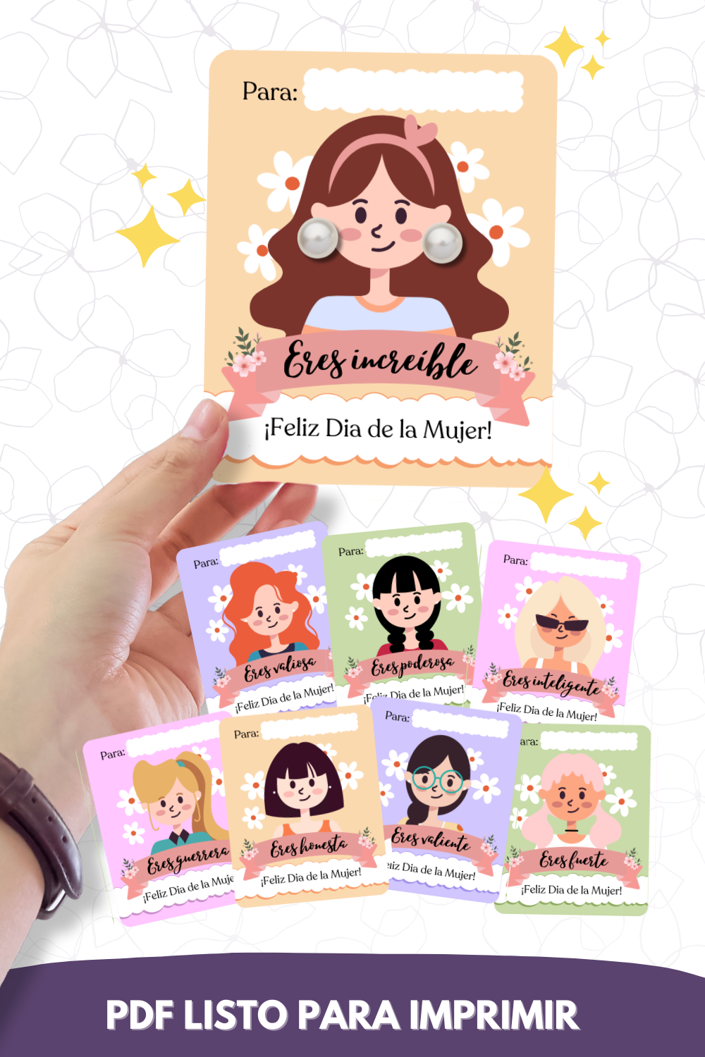 Tarjetas imprimibles porta aretes para el día de la mujer