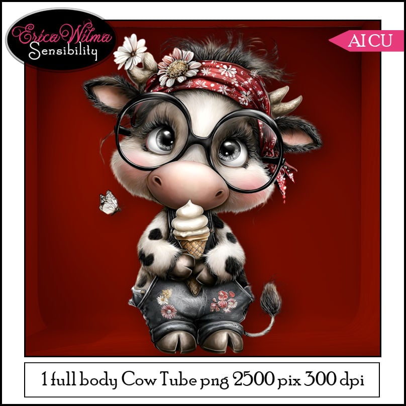 Add a touch of fun and personality to your designs with this adorable Cow Tube. This charming little cow, with her big expressive eyes, stylish glasses, and cute outfit, is enjoying a sweet ice cream moment. The playful details and soft textures make this character both unique and irresistible.