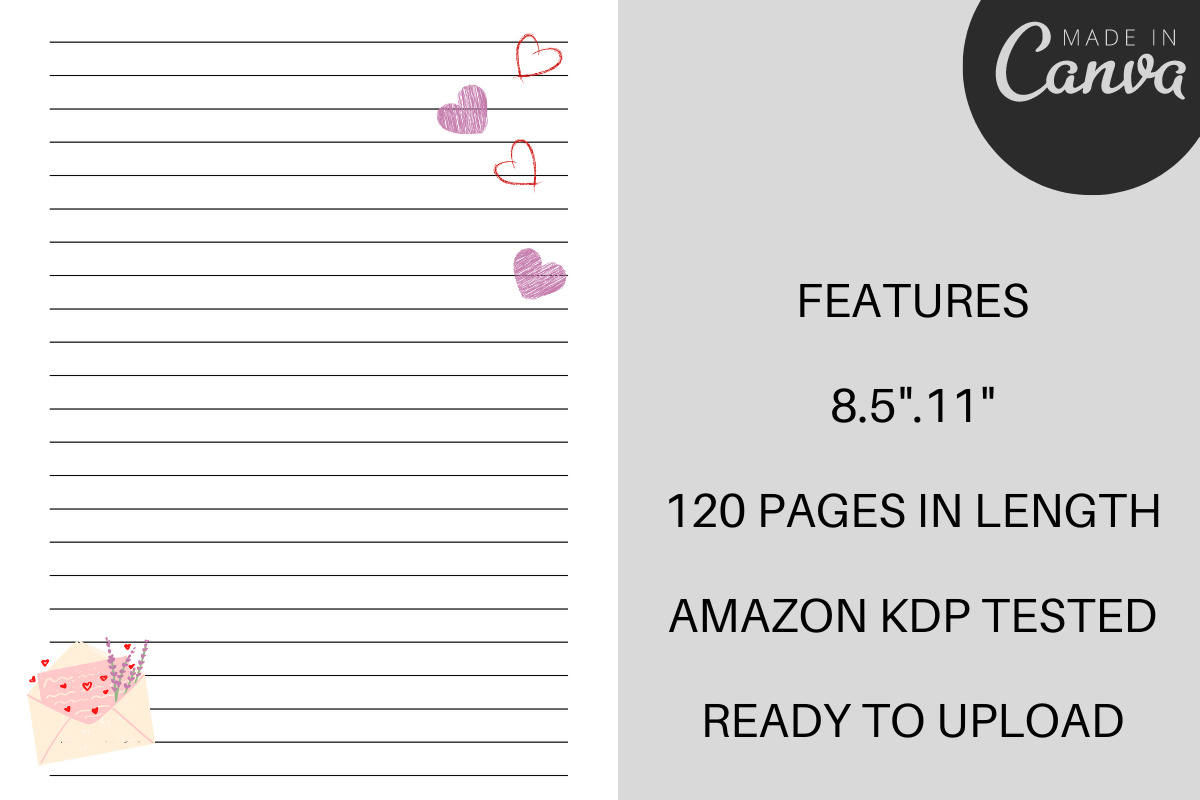 With this interior, you can quickly and easily create a high-quality, professional-looking love themed journal for KDP.