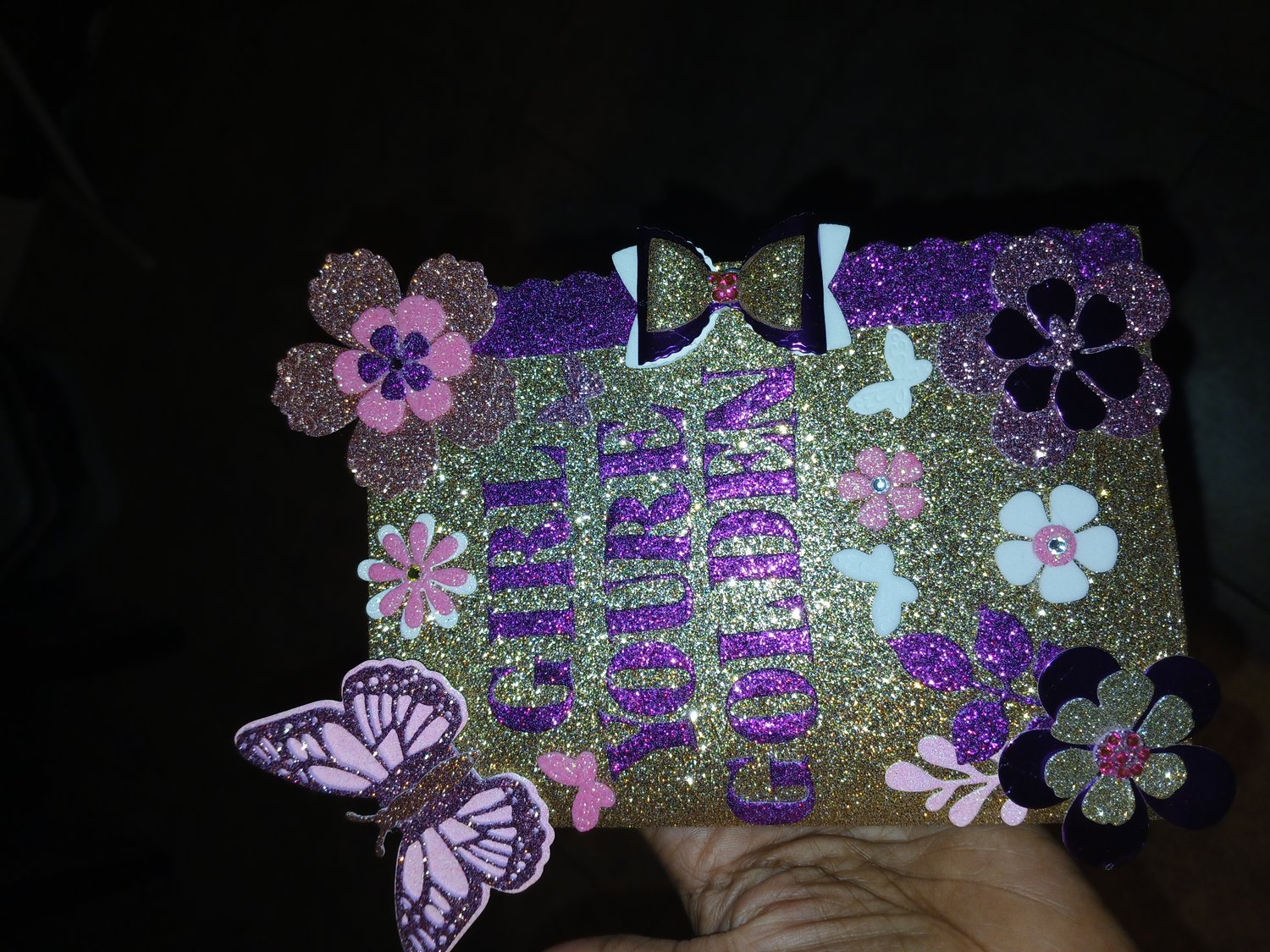 Made from all glitter foam sheets and 2 inches larger then regular card. inside message included on cardstock paper add $2