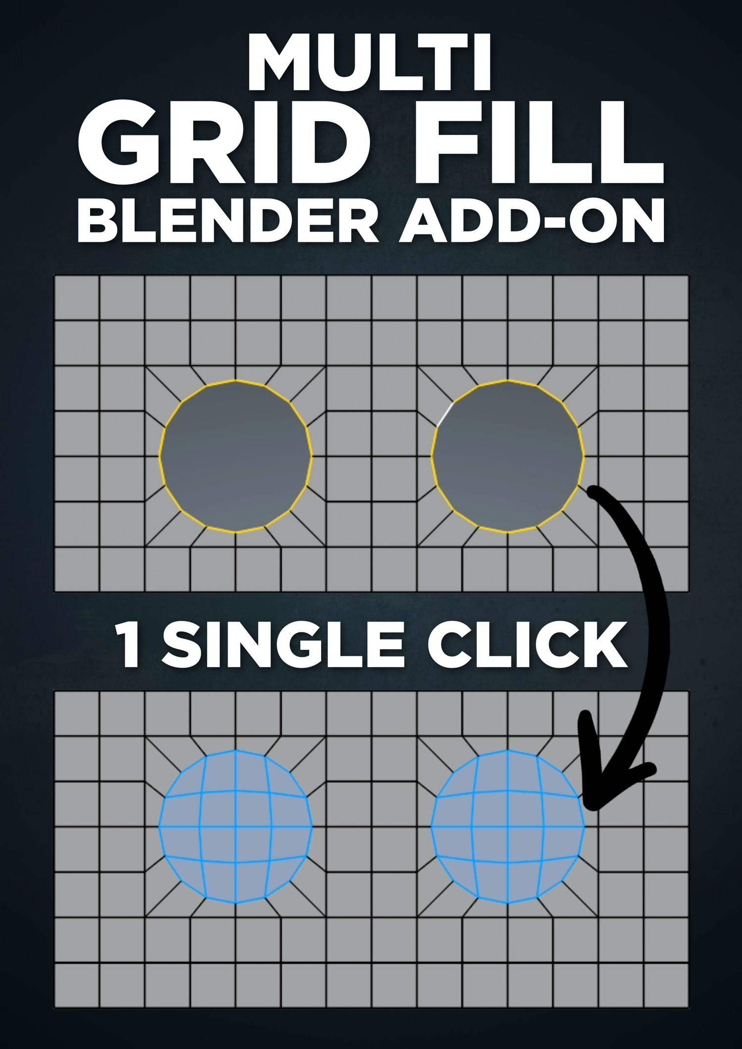 The Multi Grid Fill add-on allows you to fill multiple holes at once, with a single click. This is not possible with Blender’s default Grid Fill tool.